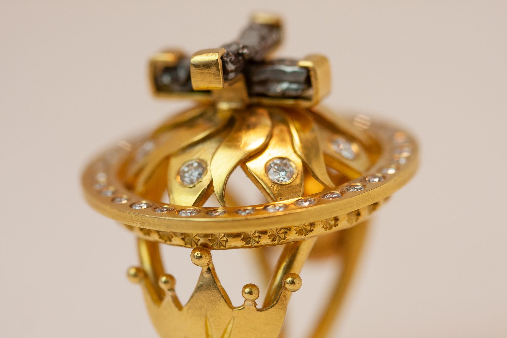 Distefano’s craft has left others breathless, too. Arielle Saiber, the Charles S. Singleton Professor of Italian Studies at Johns Hopkins University, and the preeminent Dante scholar in America, writes, “If ever there were a list of the most extraordinary homages to Dante’s Divine Comedy, a ring by master goldsmith Donna Distefano would be at the very top. It is, simultaneously, both a translation and illustration of Dante’s Paradiso…a remarkable feat that condenses Dante’s elaborate poetic description of Heaven (the material and the Divine realms) into a single expression of earthly, cosmic, and spiritual matter and form.”