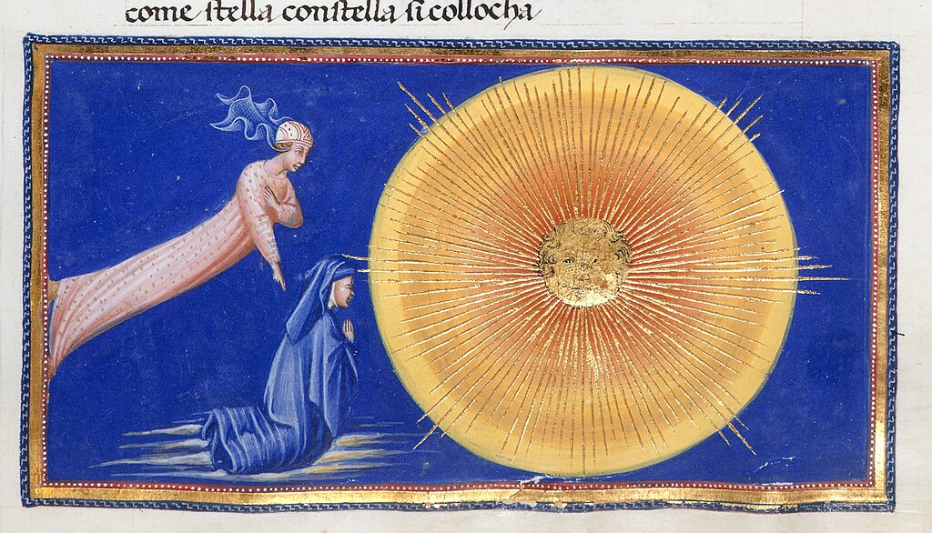 The hallmark of Dante’s scholarship is his all-encompassing cosmology—grounded in his sophisticated understanding of astronomy. Nine concentric circles lead to Heaven. Dante leads us to the moon and sun, and to the planets Mercury, Venus, Mars, and Jupiter. At last, we come to the Fixed Stars and the “Primum Mobile,” the home of the holiest of souls, as well as the source of time and motion. The poem ends with a vision of the Empyrean, pure spirit, pure light, mysterious and glorious—where Dante encounters God. “Light from light, True God from True God,” as the Nicene Creed tells us. Ineffable, incandescent, this holy spirit is the source of everything in the universe.